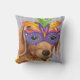 Der niedliche glatte Dackelwelpe, gekleidet in der festlicher Federmaske und -perlen, bereiten für Spaß auf Karneval oder zu jeder möglicher anderen Zeit vor. Großes Geschenk für selbst und Ihre Dackel-liebende Familie und Freunde.