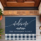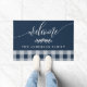 Navy und White Buffalo Karo Willkommen Personalisiert Doormat. Personalisieren Sie dieses individuelle Design mit Ihrem eigenen Familiennamen.