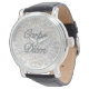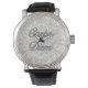 Diese elegante Uhr zeigt den lateinischen Text "carpe diem", der den Träger daran erinnert, den Tag zu pflücken und das Beste daraus zu machen. Hintergrund: Vintage Wirbel.