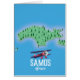 Samos Griechische Inselkarte mit einem schönen Vintagen roten Flugzeug im alten Stil.