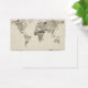 Eine Weltkarte aus einer Sammlung alter Postkarten, in verschiedenen Sprachen und mit Briefmarke aus verschiedenen Ländern, auf antikem Hintergrund.