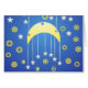 Dieses Design ist mit einem Mondmobil ausgestattet, an dem Sterne hängen. Der Hintergrund ist blau, wie am Nachthimmel. Sterne und Kreise umgeben sie. Sie können diese Karte mit Ihrem eigenen Text oder Sprichwort anpassen, indem Sie "Anpassen" auswählen. Es macht eine wunderbare Baby Dusche Einladung, Baby Ankündigung., Gratulationskarte oder Grußkarte.