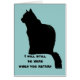 Silhouette der Katze. Der Fronttext "Ich werde immer noch hier sein, wenn du zurückkommst" liegt unter der Silhouette einer schwarzen Katze. Inside text "Komm bald Zuhause!" Personalisieren Sie eine oder beide Textnachrichten.