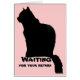 Silhouette einer schwarzen Katze mit dem Text "für Ihre Rückkehr Gewartet" unten. Personalisieren Sie die Nachricht, indem Sie den Text auf das ändern, wofür Sie gewartet sind.