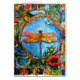 Libelle 2 - Eins der Kinder der ErdAquarelle, rote Libelle A funkt über einem Türkisteich und feiert die Farben des Sommers mit Freude. Karte.