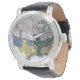 Uhr, Vintage Männeruhr mit schwarzem Lederarmband
