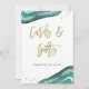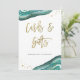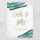 Dieses elegante, moderne Hochzeitsschild "cards & gifts" mit aquamarinen Ufersteinen in Aquarellfarbe, vergoldeten Imitaten und Splash.