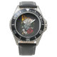 Uhr, Vintage Männeruhr mit schwarzem Lederarmband