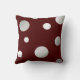 Akzent-Wurfskissen der Cheerleader getan im Weiß, mit kastanienbraunen Streifen auf der Spitze und der Unterseite des Kissens. Grafiken eines kastanienbraunen Megaphons, das BEIFALL, auf ihm und ein Paar pom poms liest, verzieren die Mitte des Kissens. Kastanienbrauner kundenspezifischer Text ist bereit, für Ihre Lieblingscheerleader zu personifizieren. Die Rückseite des Kissens ist in einem hübschen Kastanienbraun mit großen Polkapunkten des silbernen Graus erfolgt. Macht eine große Geschenkidee für jede mögliche Alterscheerleader.