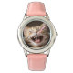 Kinderuhr aus Edelstahl mit rosa Lederarmband