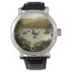 Uhr, Vintage Männeruhr mit schwarzem Lederarmband