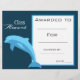 Ein stilvoller, moderner Klassenpreis mit niedlichem Delfinbild, der perfekt geeignet ist, einen jungen Schüler zu ermuntern. Sie können in Ihre eigenen Details schreiben. Eine großartige Ressource für jede Art von Klassenlehrer.