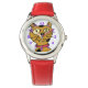 Kinderuhr aus Edelstahl mit rotem Lederarmband