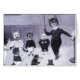 Lustige Vintage Grafik in den Schatten des Graus einen Lehrer zeigend, der versucht, eine Gruppe Kätzchen zu unterrichten zu singen