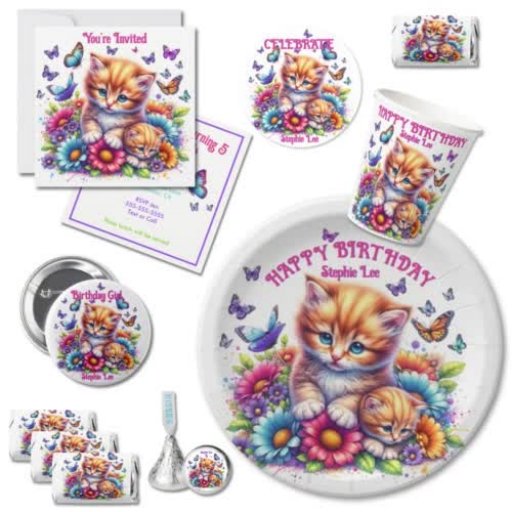 Kätzchen, Schmetterlinge und Blume Papier Teller. So süße Teller, die an ihrem besonderen Tag zum Tisch kommen. Voller farbenfroher Blume und Schmetterlinge. Genießen Sie die Einladungen, Becher, Servietten, Aufkleber, Banner und vieles mehr in der Erholung der Geburtstagskollektion von Kätzchen und Schmetterlingen.