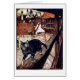 Eine Katze geht auf das Geländer eines mittelalterlichen Gebäude. Grafik durch Arthur Rackham.