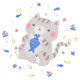 Eine niedliche Abbildung einer Katze, die auf einem rosa Macaron schläft und auf schwimmenden Süßigkeiten schwebt