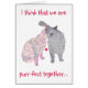 Niedliche Malerei von zwei küssenden Katzen (abstrakte Farben), mit, "ich denke, dass wir Schnurren-fect zusammen sind," auf der Abdeckung, und "würden Sie mich heiraten," wird auf dem Innere einer Grußkarte gedruckt. Der Text kann auch besonders angefertigt werden.
