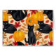 Handgemalte Muster mit schwarzen Katzen, Kürbissen und Herbstblättern. Mix-Media- Digital- und Aquarellmalerei.