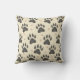 Das Kissenpolster ist in warmen Farben gehalten und hat ein niedliches Katzenpaw-Druckmuster, groß und klein.