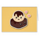 Niedlicher NahrungsmittelCartoon einer Schaufel der Vanilleeiscreme auf Schokoladenschokoladenkuchen mit zwei Herzen und Fudge. Mitteilung innerhalb der Karte liest "Vanilla Ice, den Creme zum Schokoladenkuchen gehört. Gerade wie Sie und ich." Für jedermann, das kawaii Material mag, Nachtische.