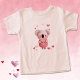 This sweet pink koala bear clutching a heart with a kawaii face looks adorable on assorted t-shirts for little ones. The koala is centered on a clear background of more pink hearts. Select your choice of two fabric blends. Then choose your size and color.