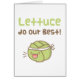 Ein niedliches Gekritzel, zum ein oben zuzujubeln und ein anzuregen, irgendjemandes Bestes zu tun! Es hat einen kawaii Grünkopfsalat, der ein Beifall schreit, zum des Fokus zu bleibe und ein Hauptband sogar, tragend, das Ganbatte liest, das eine japanische Phrase für "ist, Ihr Bestes tun Sie". Der geistreiche und unterhaltende Wortspieltitel liest "Kopfsalat tun unser Bestes!" welches ist, fasst ein Spiel auf ähnlich klingen "ließ uns" ab. Ein Gekritzel, das ein Lächeln auf Ihr Gesicht setzt!