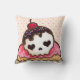 Dieses Ausrüstungsbeschreibungen ein niedlicher Schädelkleiner kuchen mit Schokolade und bunte Spitzen, Erdbeermarmelade und eine Kirsche auf rosa Polkapunkthintergrund.