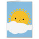 Eine niedliche und bunte Sonne mit Wolke und blauem Himmel.