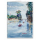 Kayakers auf Weeki Wachie ist eine Aquarellmalerei von zwei Leuten, die auf einem klaren blauen Fluss kayaking sind, der heraus in Richtung zu einer Brücke vorangeht. Die Flussszene wird durch Bäume und etwas Gebäude auf dem Ufer angegrenzt. Die Aquarellmalerei ist in einer losen Art erfolgt und die vorstehende Farbe ist mit Grün und Akzenten von Rotem blau, brüniert und bräunt sich. Gedruckt von einer ursprünglichen Kunstmalerei auf Papier durch JC Prida. 2015