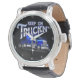 Uhr, Vintage Männeruhr mit schwarzem Lederarmband