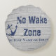 Personalisiert No Weck Zone, Navy Anchor Rope Nautic runden Kissen Personalisierte Dekor Suite von Produkten mit Ihrem Bootsnamen, Familiennamen, oder jeden Text, den Sie gewollt. Es verfügt über einen marineblauen Anker mit einem nautischen Seil-Design, in marineblau auf einem grauen Holzputz.