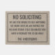 Dieses lustige Türdesign beinhaltet die Worte "Keine Aufforderung, wir sind zu broke, um alles zu kaufen, was wir wissen, um wir stimmen für Jesus gefunden haben, so, es sei denn, Sie haben ein Paket für uns weg". Personalisieren Sie diese niedlichen rustikalen Imitate bedecken die Türmatte mit Ihrem Familiennamen und persönlichen Gruß. Die perfekte moderne Hauswärmung oder das Geschenk neuer Hausbesitzer.