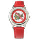Kinderuhr aus Edelstahl mit rotem Lederarmband