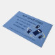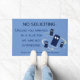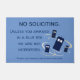 Die Möglichkeit für einen Science Fiction-Fan, ein wenig Spaß mit Anwälten zu haben. Blaue Polizei-Kisten und eine "No Proliciting"-Nachricht auf blauem Hintergrund. Originelles Design von Night Owl's Menagerie 2019.