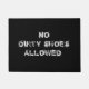 No Dirty Shoes erlaubt: Holen Sie sich ihre Aufmerksamkeit mit einer lustigen Nachricht. Oder personalisieren Sie mit Ihrer eigenen Nachricht. Schwarzer Hintergrund mit weißem Text.