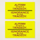 Autismus ist keine Tragödie. Unwissenheit ist die Tragödie. Einfaches Textdesign von autistart.com. Aktivistenkarten.