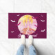 Keine Tricks nur Leckereien Spooky Castle Halloween Doormat. Wunderschönes Schloss auf dem Hügel. Das Design ist lila und orange.