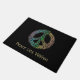 Keltische Friedenszeichen-Fußmatte. Ein buntes keltisches Knotenfriedenszeichen auf einer schwarzen willkommenen Fußmatte. Die Text Friedenslügen innen ist- editable und kann den Familiennamen oder jeden möglichen Text Ihrer Wahl haben. Keltische Knoten sind eine alte keltische traditionelle Kunstform, die normalerweise indem sie keinen Anfang gekennzeichnet werden und kein Ende haben. Sie symbolisieren ewige Liebe und den immer währenden Zyklus des Lebens. Sie sind gefunden worden, um ein Lieblingssymbol in vielen mannigfaltigen Kulturen und in Zivilisationen und mit vielen Praktikern von Magie oder von Mystizismus zu sein heute. Dieser endlose Knoten bildet das internationale Symbol für Frieden. #welcome