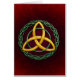 Das Triquetra oder der keltische Dreiheits-Knoten, ist drei in Verlegenheit brachten keltischen Knotenentwurf mit verschiedenen Bedeutungen. Christen sehen ihn als Darstellung der Dreiheit des Vaters, des Sohns und des heiligen Geistes oder des Geistes. Die älteren Heiden würden sie für die Mutter, die alte Frau und das Mädchen sehen. Und die metaphysischere Denkschule sieht die Dreiheit, als Darstellung des Verstandes, des Körpers und des Geistes zu knoten.