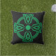 Großes Kissen entwarf mit einem grünen keltischen Kreuz mit 4 Triquetra Symbolen.
