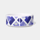 Katzenfutterschale aus weißer Keramik hat eine moderne geometrische in Purpur, als Hintergrund. Fügen Sie Ihren Haustiernamen an der personalize-Eingabeaufforderung hinzu, und sein Name erscheint zwischen den beiden Katzengrafiken. HAMbyWhiteGlove.