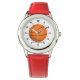 Kinderuhr aus Edelstahl mit rotem Lederarmband