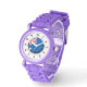 Uhr, Kinderuhr aus Edelstahluhr mit lila Lederarmband