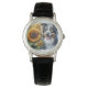 Uhr, Klassische Damenuhr mit schwarzen Lederarmband