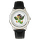 Klassische Lederrippenuhr in Schwarz mit niedlichem Papageienprint. Wählen Sie diese Uhr aus verschiedenen Stilen. Passen Sie diese Uhr an oder kaufen Sie, wie es ist. Börsenbild all-free-download.com