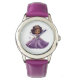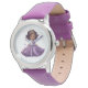 Kids Classic Lederriemen Armbanduhr lila mit einem niedlichen kleinen Princess-Druck. Wählen Sie diese Uhr aus verschiedenen Stilen. Passen Sie diese Uhr an oder kaufen Sie, wie es ist. Lizenziertes Bild