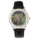 Kids classic black leather strap watch shown with a wildlife cheetah's photo print.
