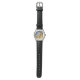Kids classic black leather strap watch shown with a wildlife lion photo print.