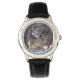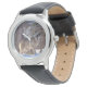 Die klassische schwarze Lederrippenuhr wird mit einem Foto aus Wildwolf gezeigt. Wählen Sie diese Uhr aus verschiedenen Stilen. Passen Sie diese Uhr an oder kaufen Sie, wie es ist. Bild
